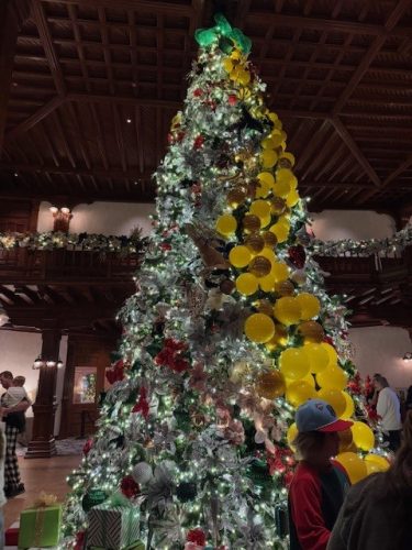 Also, this year’s theme was the Wizard of Oz/Wicked. The trees were decorated as characters from the move, and the reception area had a tree with the Yellow Brick Road. (We also saw the second half of Wicked–which I really like despite the reviews)