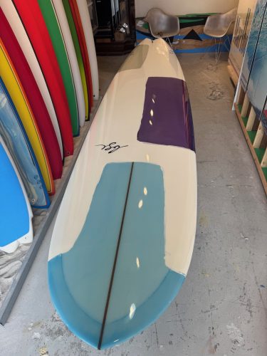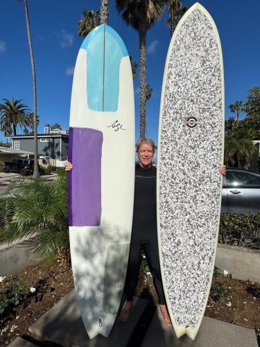 I have another one that I love, but it’s getting a little worn. I had Tim put on a new soft top which is a great invention. Same board, but with a soft top that your feet stick to. No more wax.